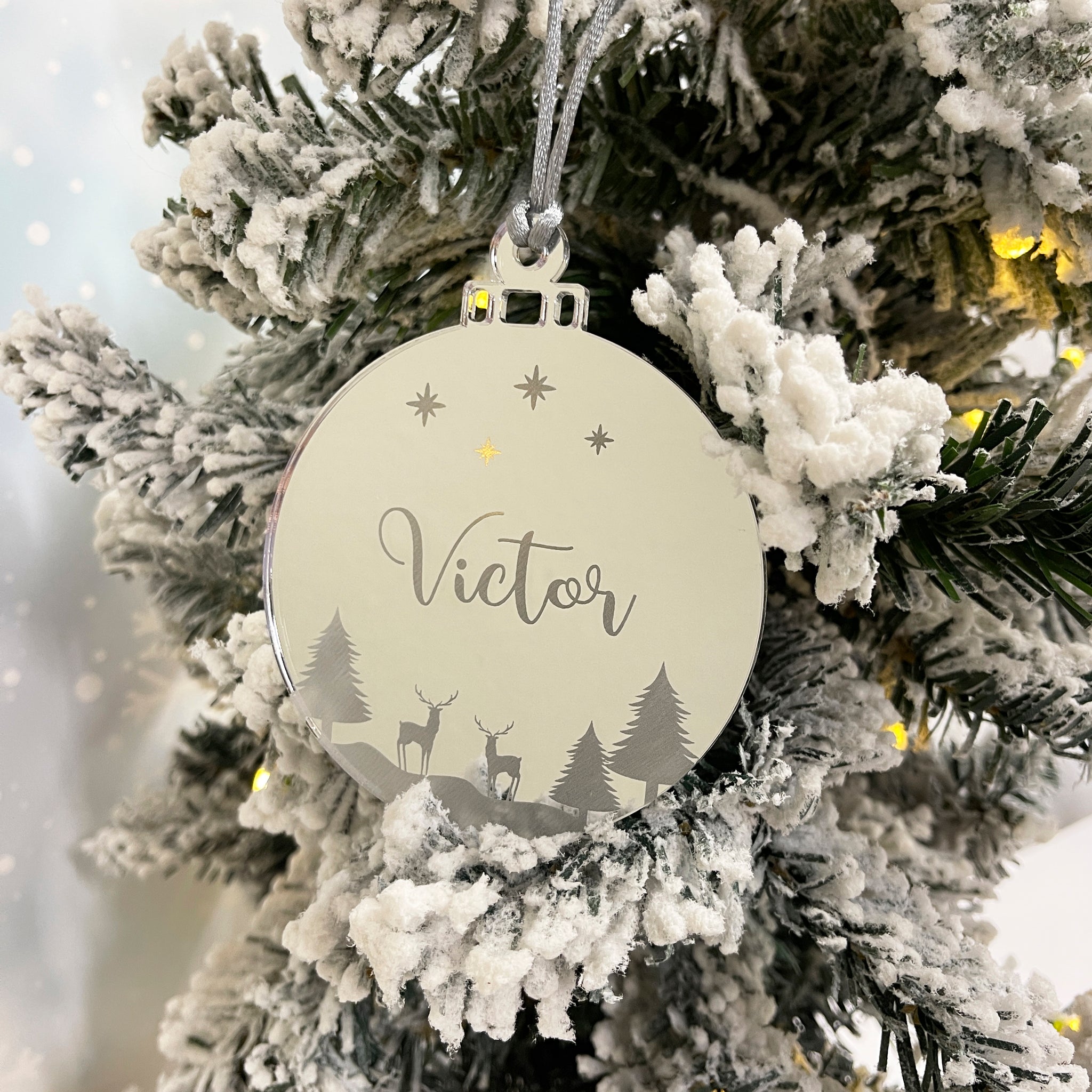 Esta bola personalizada con el nombre, o la frase que desees, es ideal para decorar el árbol estas fiestas navideñas o colgar en cualquier rincón de tu casa para dar un toque especial a la decoración. También puedes utilizarla como marcasitio para tus invitados o para identificar los regalos.
